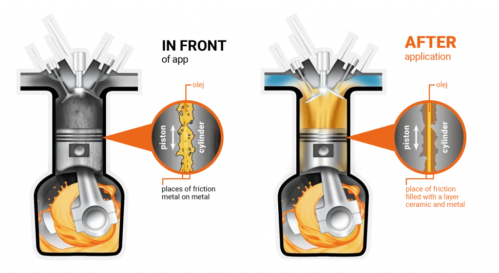- The effect of the rebuilt surface also remains after subsequent oil changes (at least per 100,000 km of car mileage).